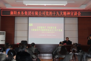 根據(jù)市國資委黨委的統(tǒng)一安排,12月25日下午,市國資委黨委委員、副主任鄧世海來到襄陽水務(wù)集團有限公司開展黨的十九大精神專題宣講。集團公司本部全體干部職工、襄陽中環(huán)水務(wù)有限公司班子成員及基層黨支部書記和黨務(wù)工作人員共50余人參加了學(xué)習(xí)。