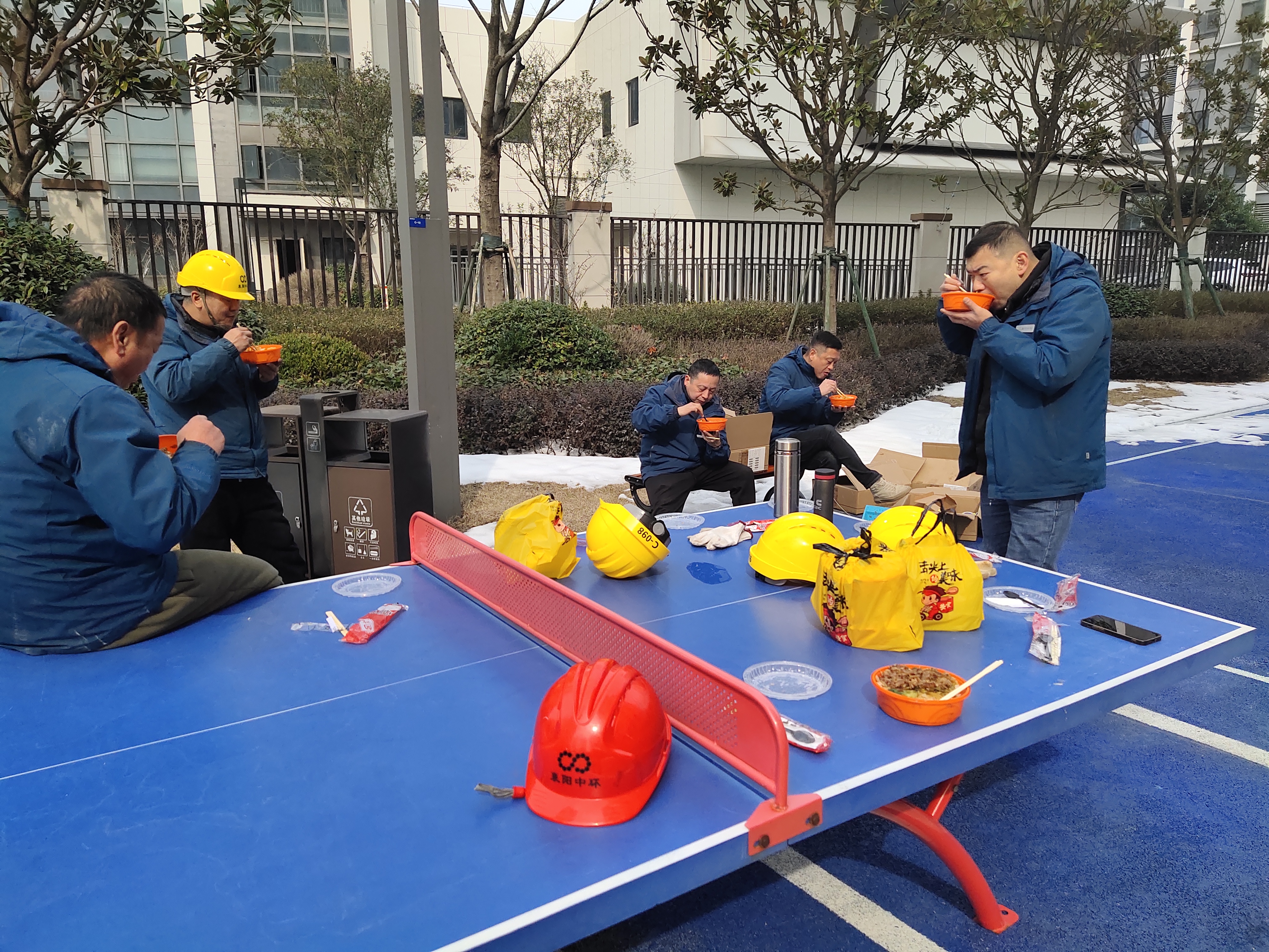 2月8日,供水工程分公司“抗冰凍保供水”搶修工作持續(xù)緊張進(jìn)行中。為提高搶修效率,各搶修突擊隊(duì)都是在各小區(qū)簡(jiǎn)單的扒上兩口盒飯后繼續(xù)提起工具、扛起水表奔赴搶修現(xiàn)場(chǎng)。小區(qū)里的居民紛紛對(duì)在露天就餐的同志豎起了大拇指,在收到居民的謝意和問候時(shí),突擊隊(duì)成員說(shuō)道:“為了萬(wàn)家團(tuán)年宴,我們寧愿吃盒飯!”
